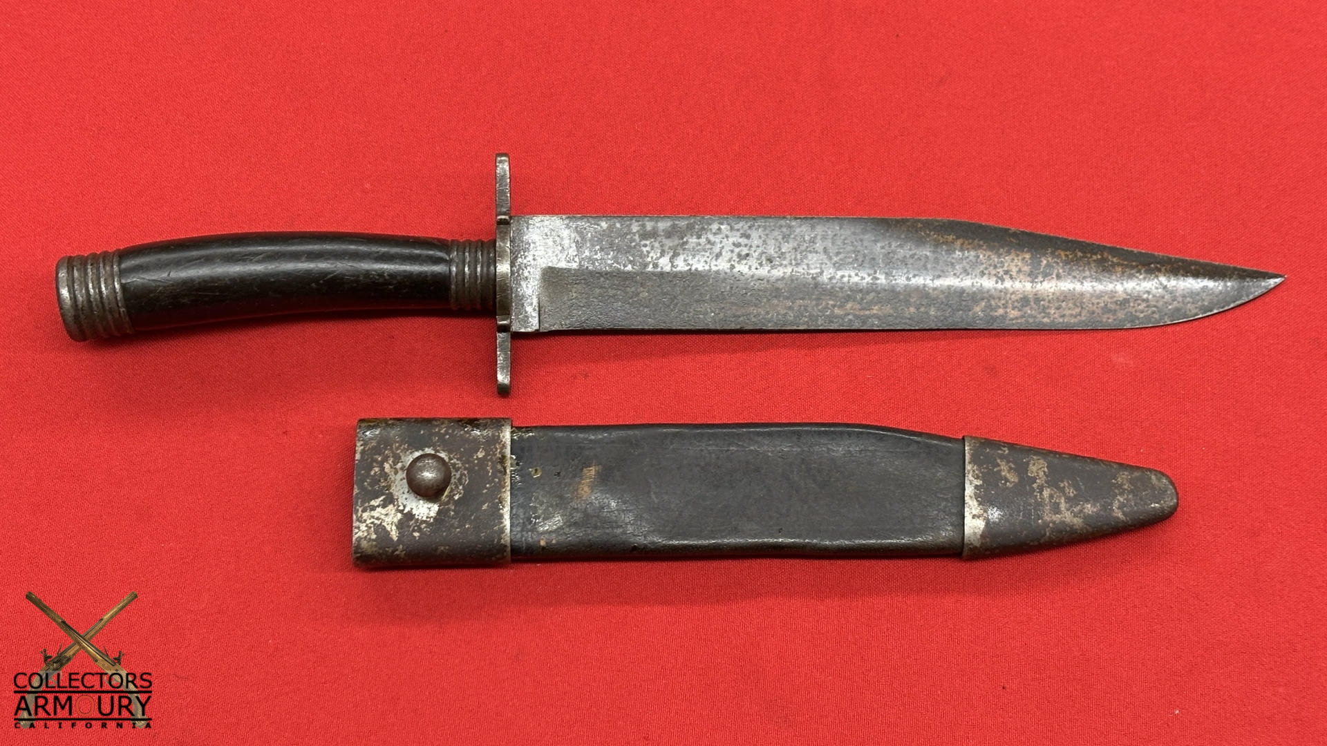 An original comb morion over 400 years old. The skull made in two pieces with roped comb. Brim with “pie crust” border. Large polished embossed “fleur de lis”. The comb polished. The remainder of the helm blackened steel as is traditional with this well known type. Ten brass lining rosettes (two missing). The helmet with interior rough from the hammer.