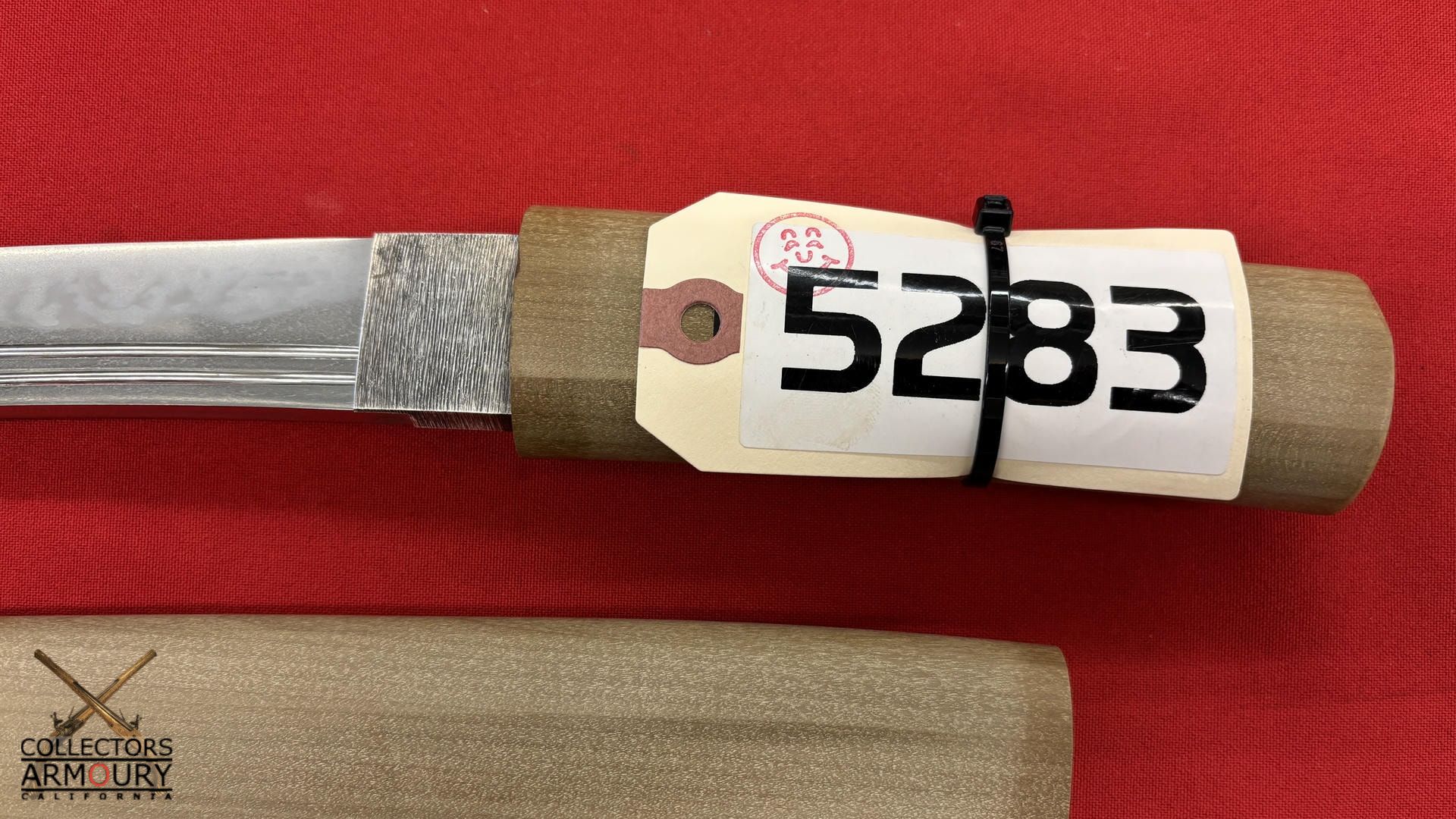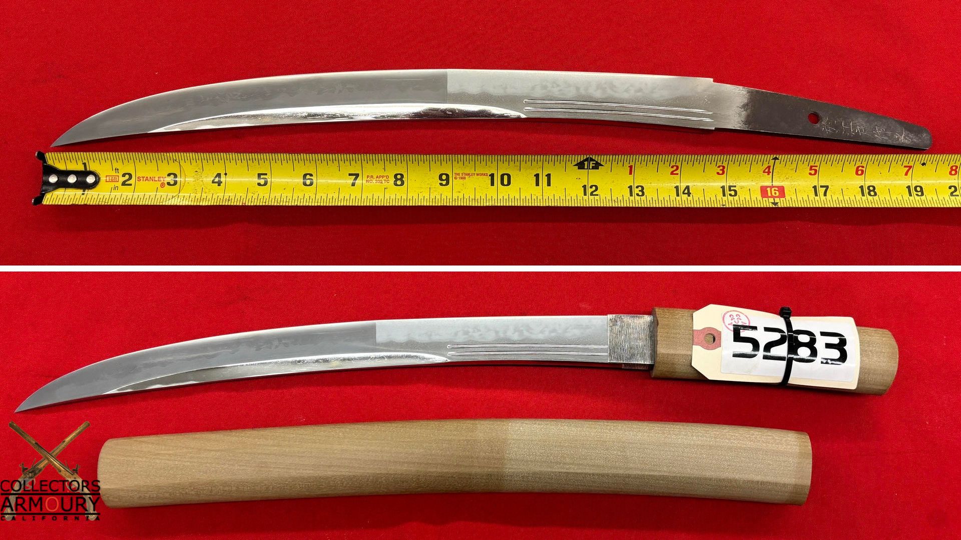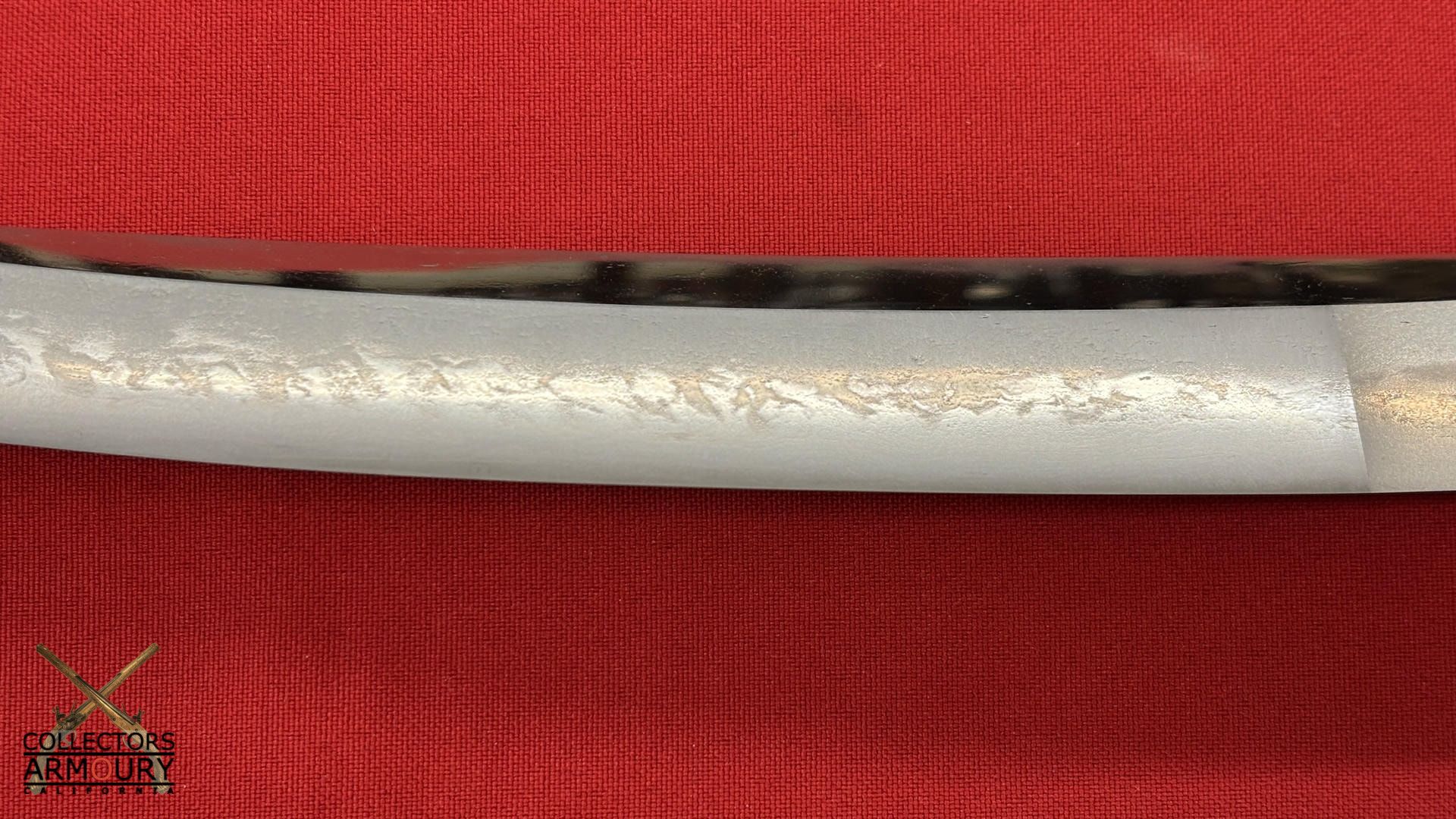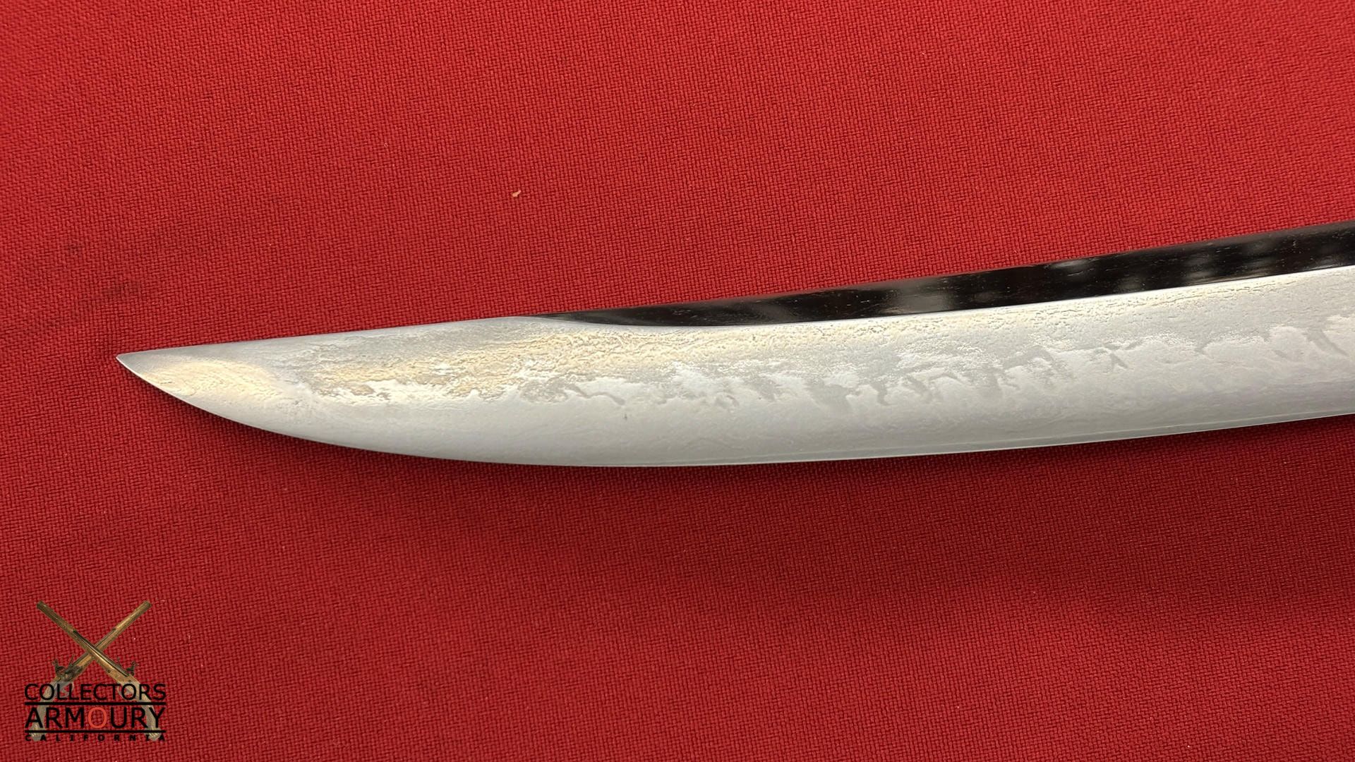 The blade in full bright mint sashikomi polish with no kizu. Comes with fine quality Japanese shira saya. A robust and true work of the Japanese swordsmith's art this o-tanto cannot fail to dazzle the eye of any aficionado of nihon to.