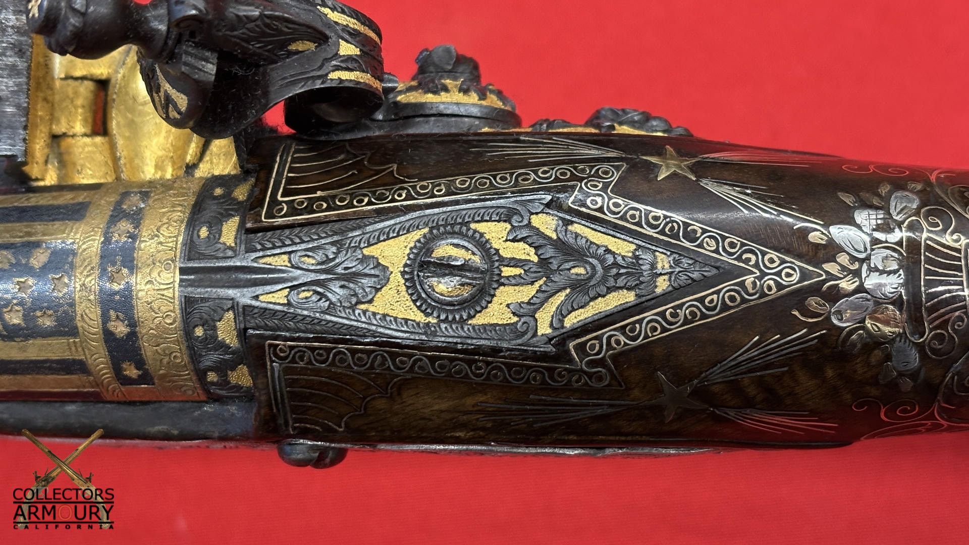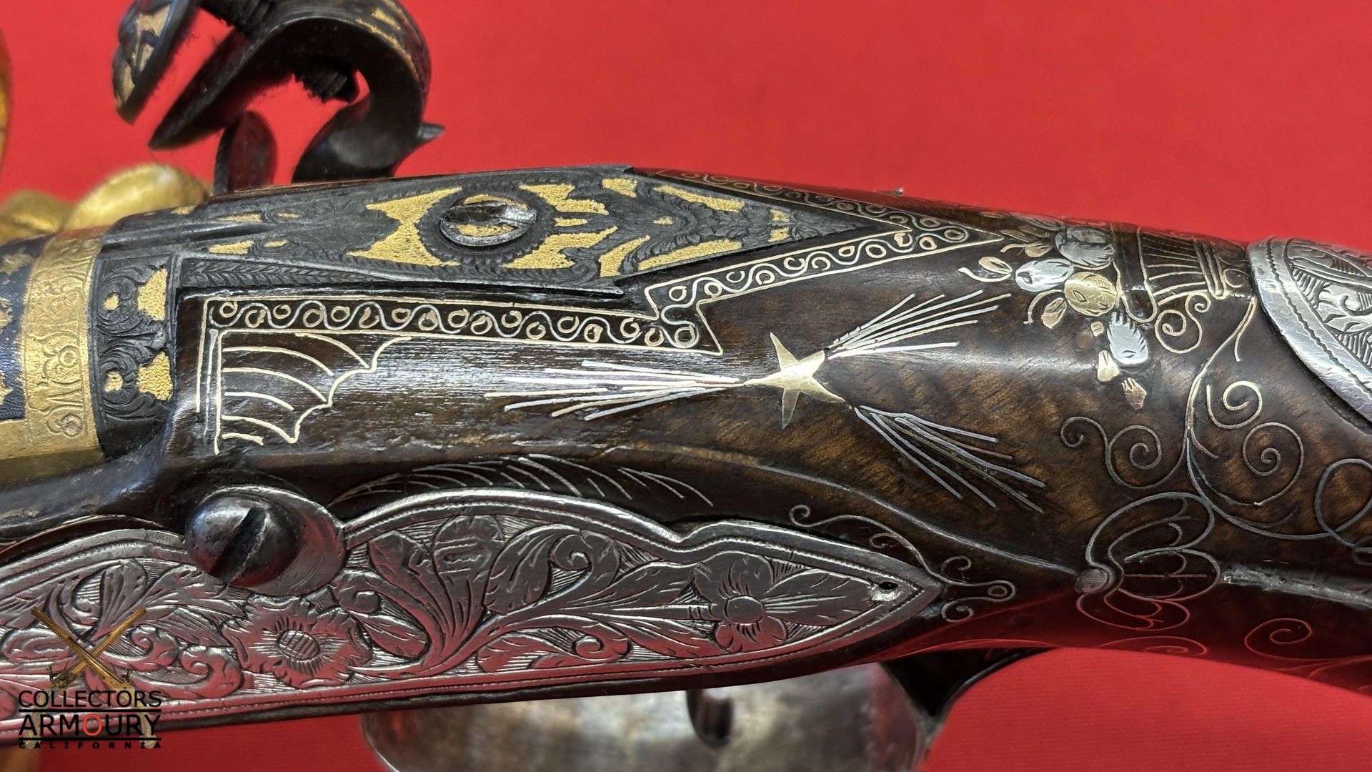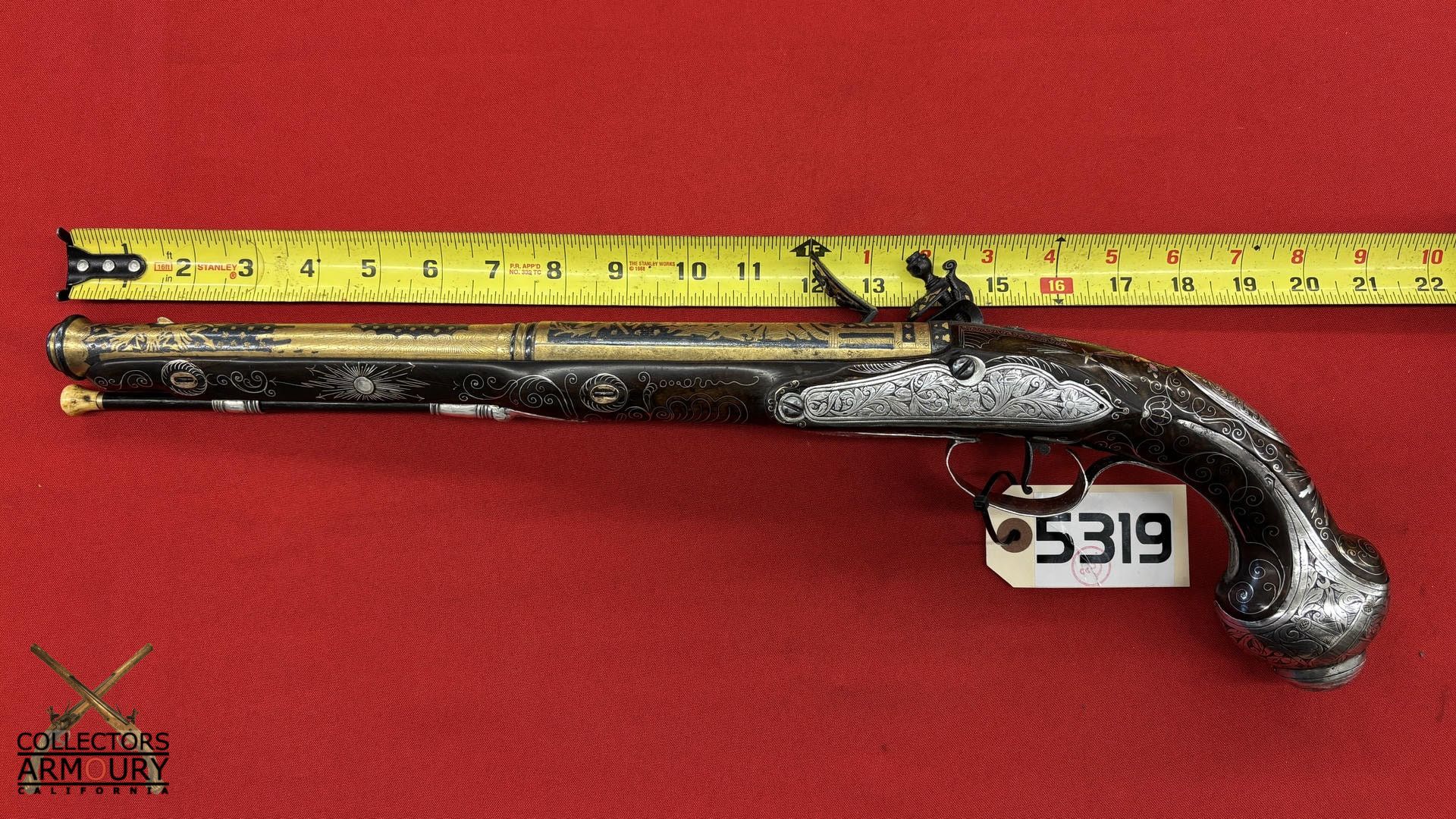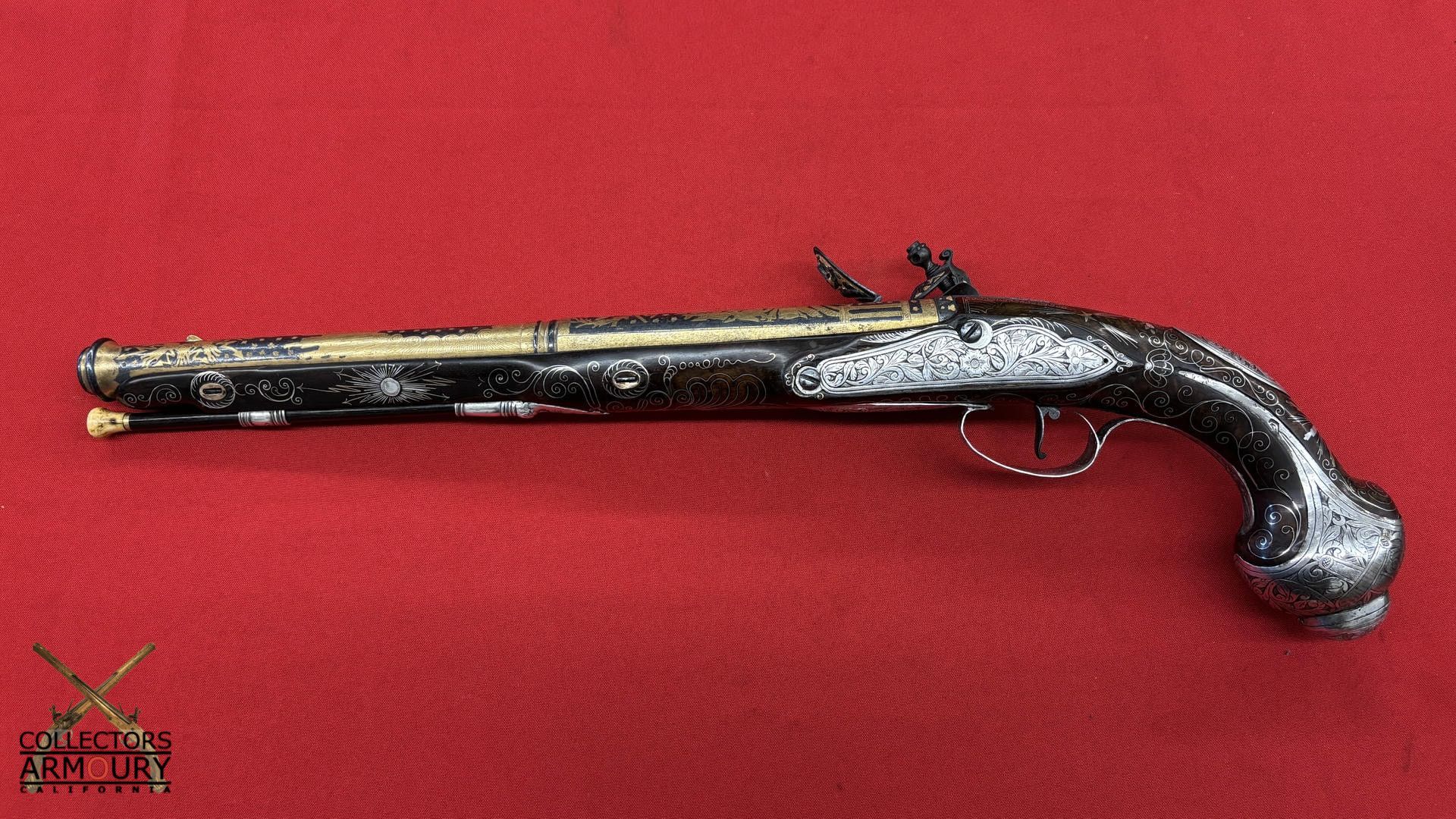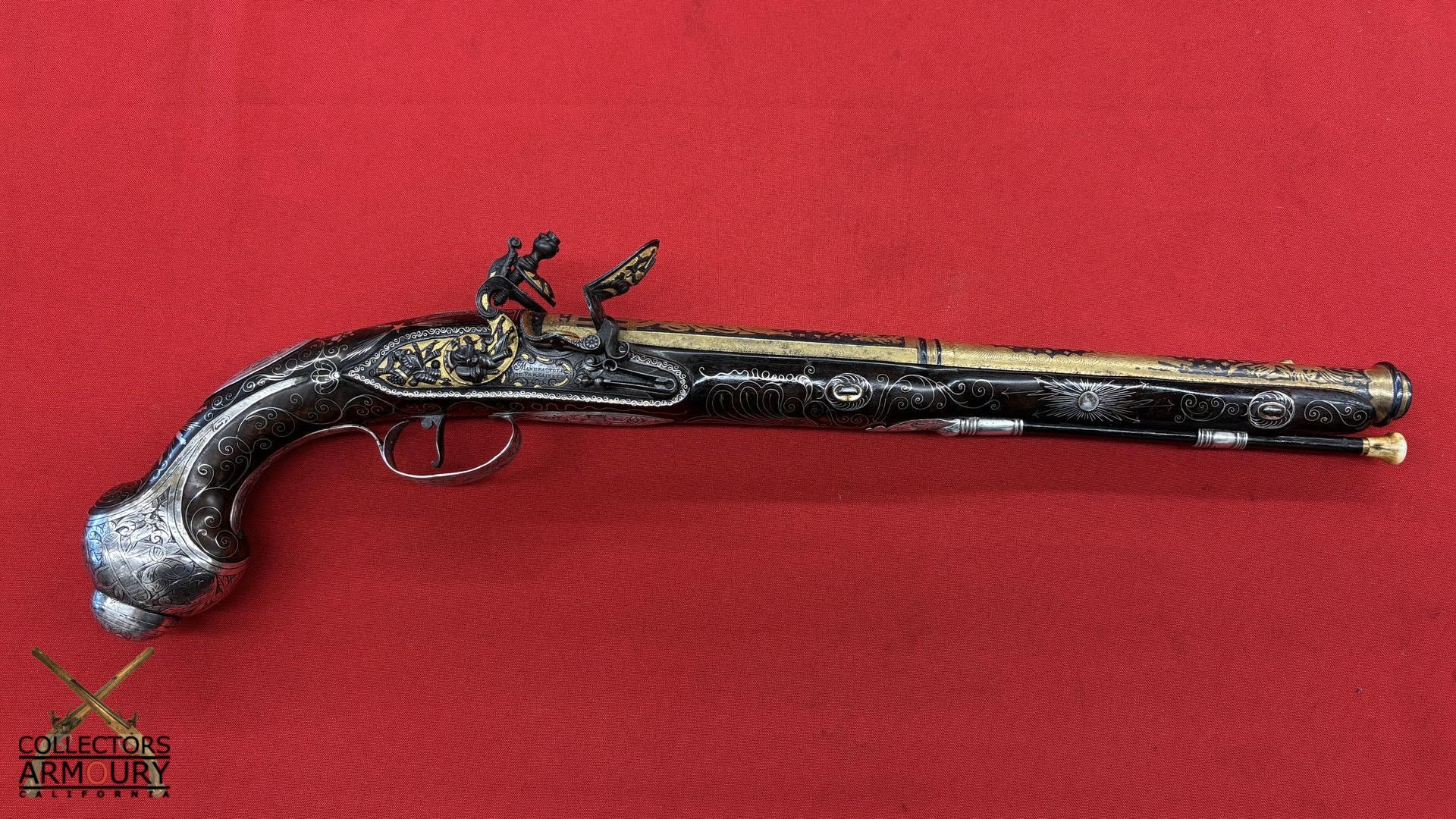 Highly Ornate Gold And Silver Decorated French Flintlock Pistol