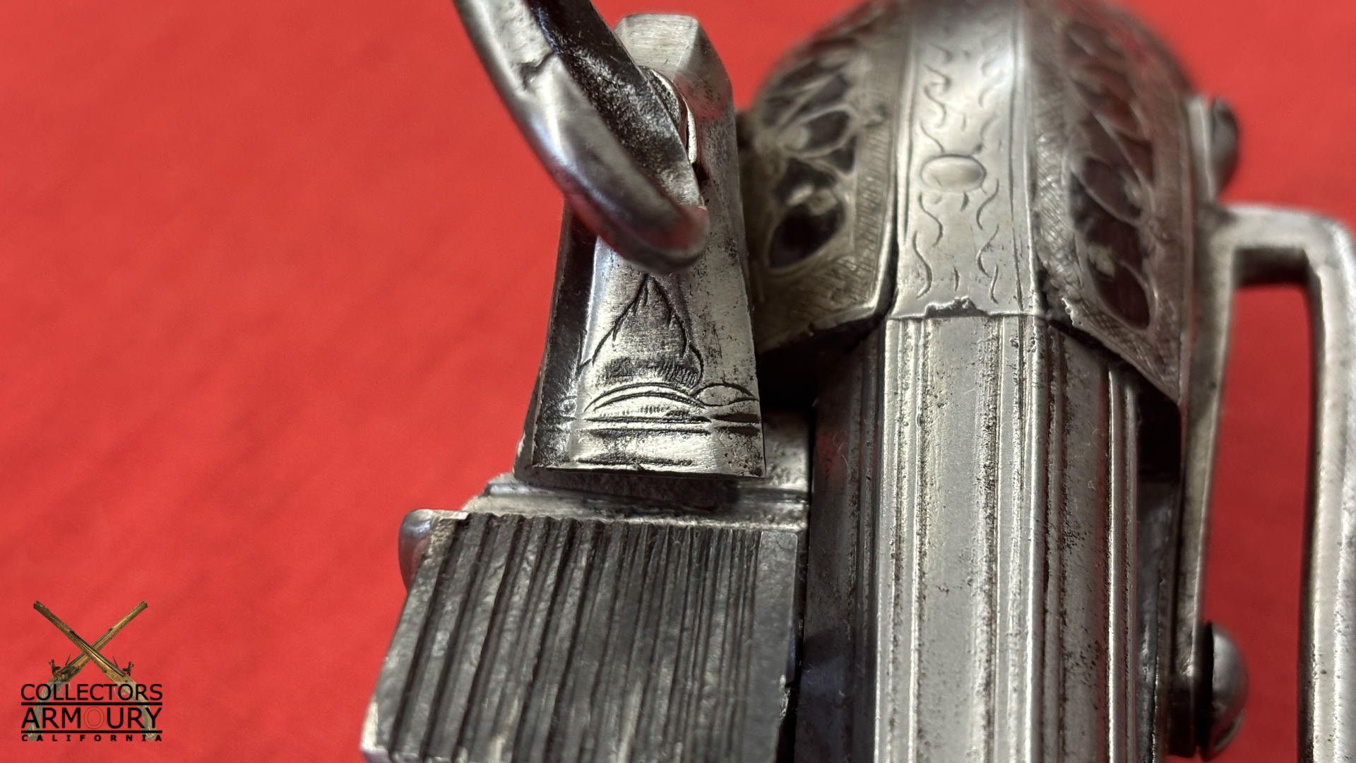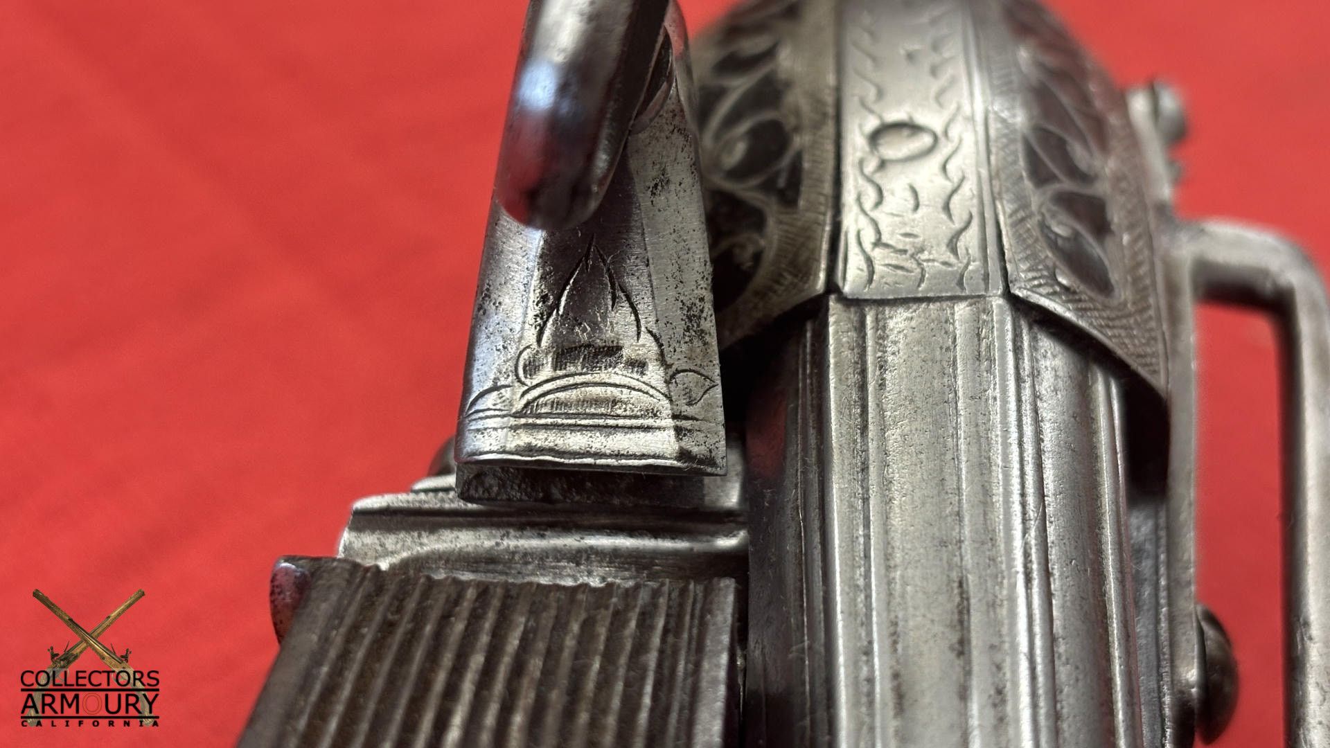 Extremely Rare Matched Pair Of Engraved Steel Inlaid Spanish Ripoll Miquelet Belt Pistols