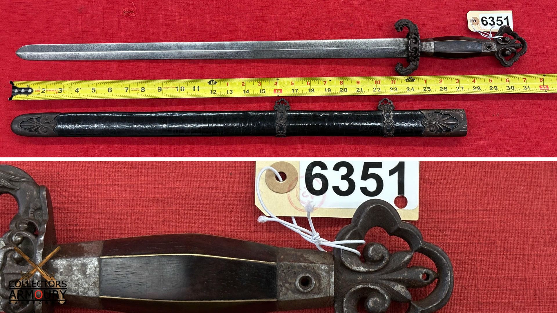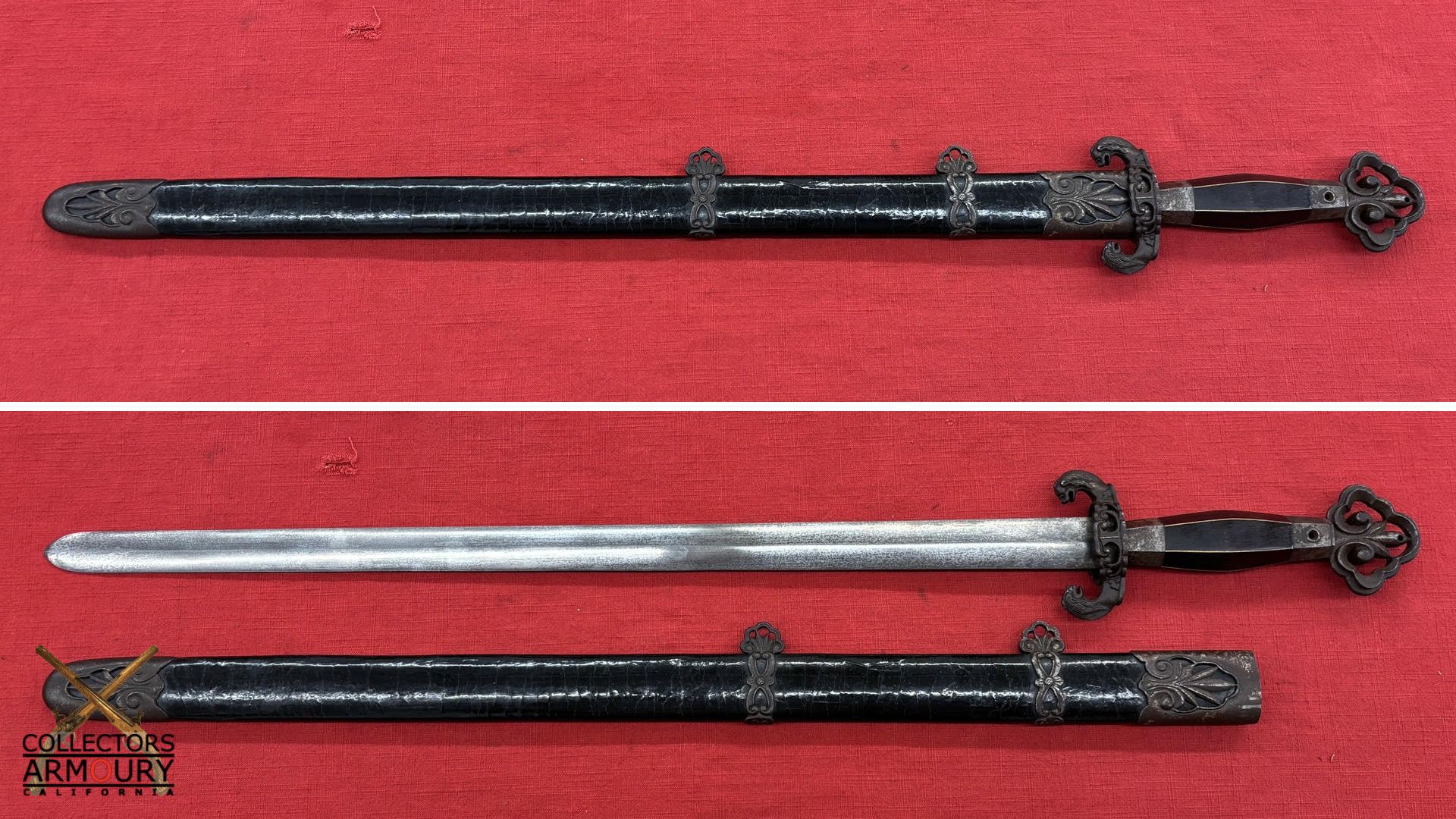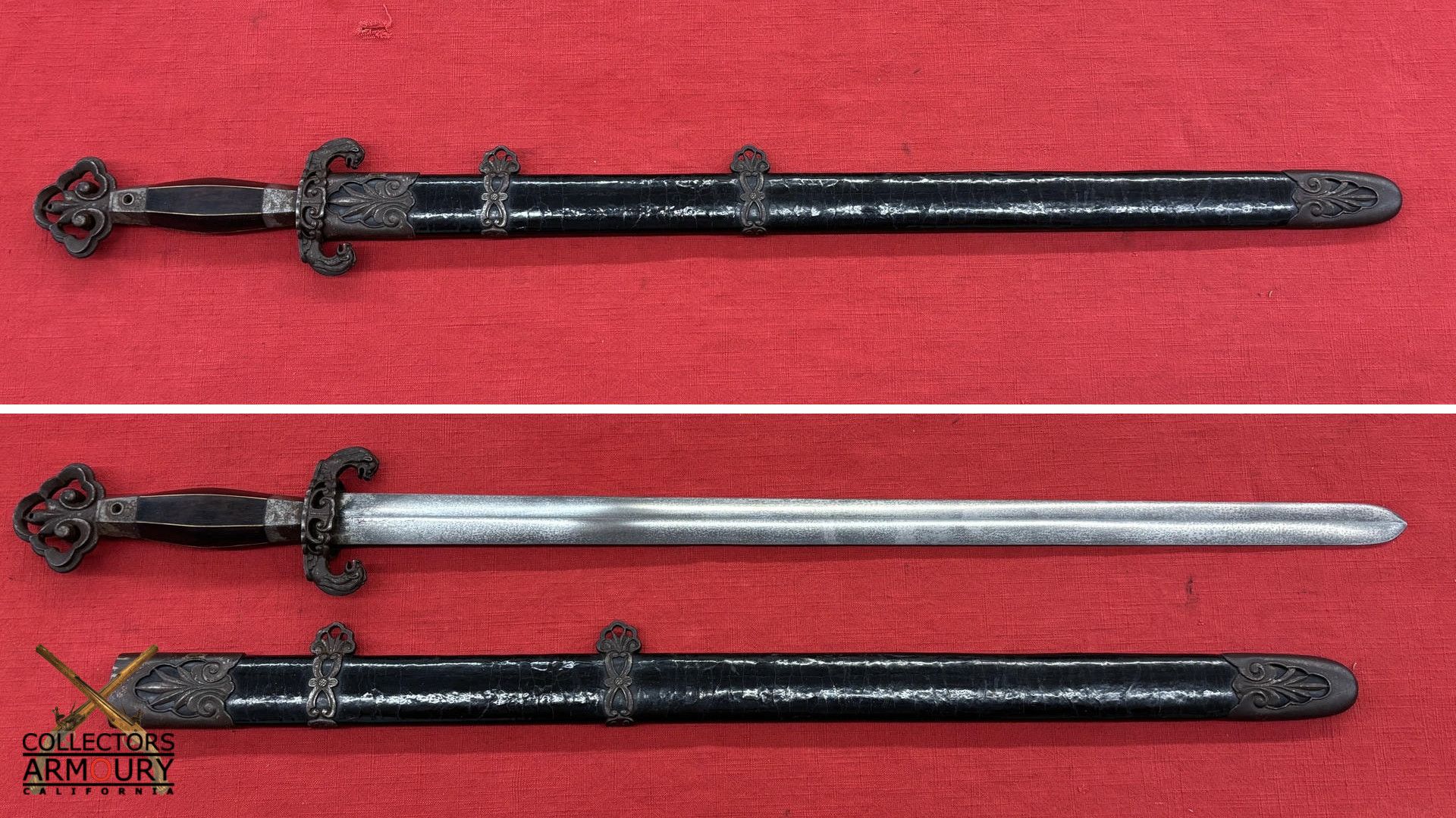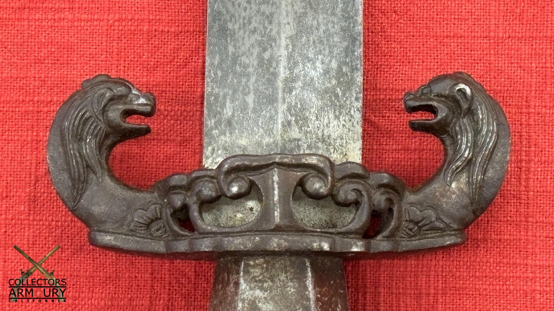 The quality throughout is of such a high degree that it might be said to approach that of a Chinese Imperial weapon, Condition is fine to excellent. 31 inches overall out of scabbard. 33 inches overall in scabbard. This is the finest Chinese sword we have ever had the pleasure of owning and are proud to offer it for sale.
